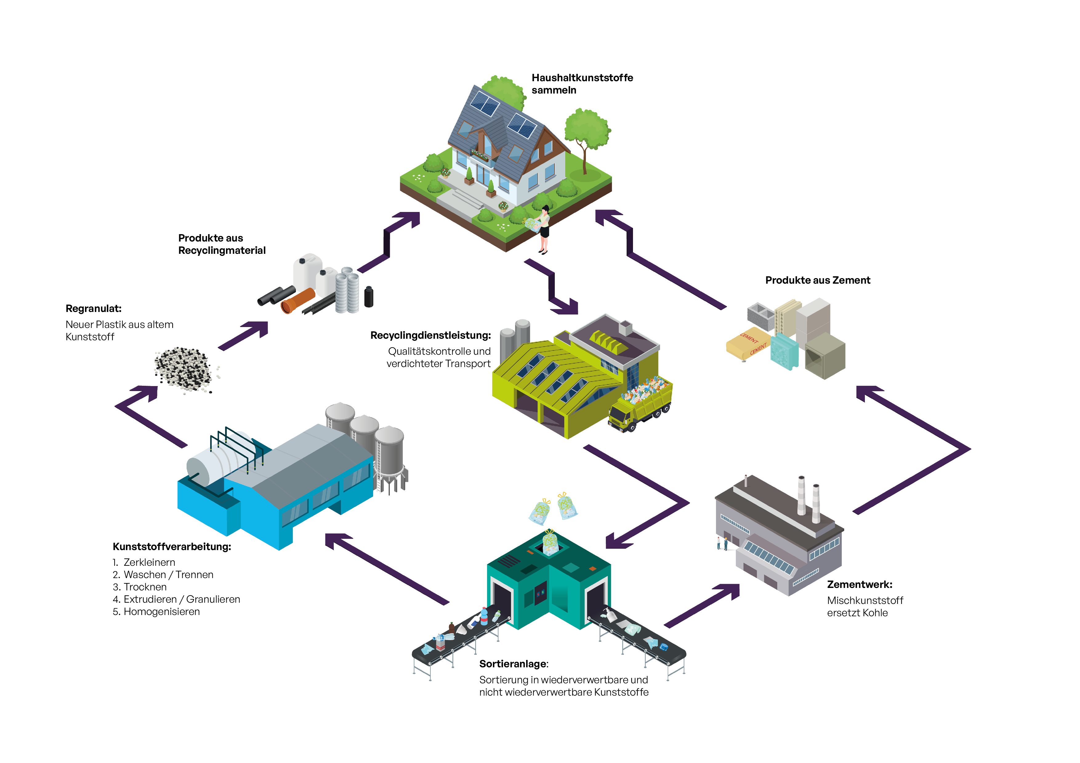 «Wir streben insgesamt eine möglichst hohe regionale und nationale Wertschöpfung an», erklärt Marc Briand von der Systembetreiberin und ergänzt: «Bei unserem System kann bis zu 90 Prozent des gesammelten Materials nach der Sortierung in der Schweiz weiterverarbeitet werden.» Damit sei gewährleistet, dass die Stoffkreisläufe geschlossen und Ressourcen geschont werden. Auch bei der Vergabe von Sammel- und Logistikarbeiten setzt die Systembetreiberin auf regionale Partnerunternehmen.